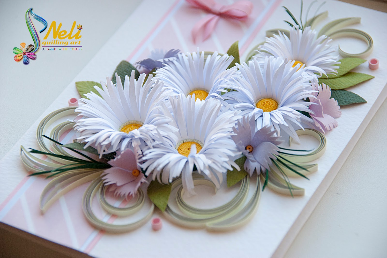 Quilling greeting card with bouquet of daisies Neli Quilling, Quilling Quilling Daisies Learn how to make the sweetest quilled paper daisy. These daisy flowers are one of the basic quilling shapes, so they are great for a beginner to. Roll a few big, bold, beautiful blooms! All you need is paper and glue. This tutorial will show you how to make your own paper quilled daisy earrings. This tutorial covers the basics. Quilling Daisies.